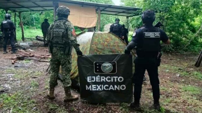 En seguimiento a los operativos de prevención, en otro hecho en la localidad de Santa Ana Amatlán, durante recorridos en brechas de terracería los agentes policiales y castrenses localizaron un campamento al parecer utilizado por células criminales.