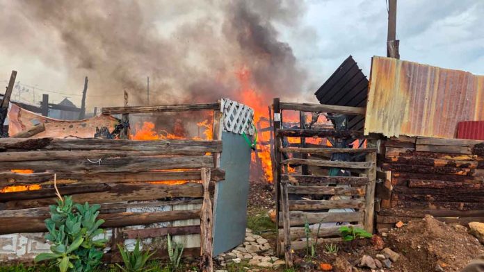 Morelia, Mich.- Miércoles 02 de julio de 2025.- Al menos tres casas de madera y láminas de cartón ardieron en llamas durante la tarde de este miércoles en la colonia irregular El Polvorín, ubicada al poniente de Morelia. El hecho no dejó lesionados, sólo daños materiales, comentaron autoridades policiales.