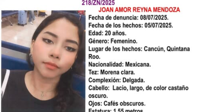 Jalisco.- Joan Amor Reyna Mendoza, de 20 años de edad, fue reportada como desaparecida luego de viajar desde Quintana Roo, de donde es originaria, hasta Jalisco, donde supuestamente iniciaría un trabajo como dibujante, tras ser contactada por un presunto arquitecto.
