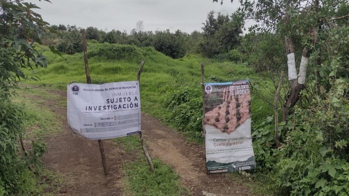 Durante la diligencia, personal de la Unidad de Investigación y Persecución de Delitos Contra el Medio Ambiente llevó a cabo una inspección del predio, donde se localizaron múltiples tocones de árboles recientemente derribados, así como plantaciones de aguacate que no contaban con los permisos legales correspondientes.