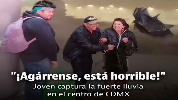 Uno de los momentos más destacados fue capturado por un usuario en redes sociales, quien mostró cómo tuvo que refugiarse bajo la entrada del Palacio de Bellas Artes mientras la tormenta arreciaba. En el video se le escucha decir: “Ay Dios mío, está horrible, agárrense, está horrible”, mientras el viento movía violentamente los paraguas y la lluvia caía sin tregua.