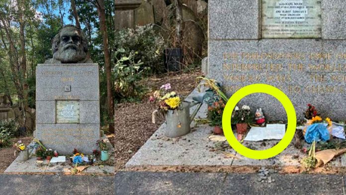 Todo comenzó cuando un visitante del cementerio londinense compartió la insólita fotografía, acompañándola con el intrigante comentario: “Labubu ha elegido el comunismo”. La estampa muestra el icónico busto de Marx, con flores a sus pies y el pequeño Labubu de color gris posado discretamente.