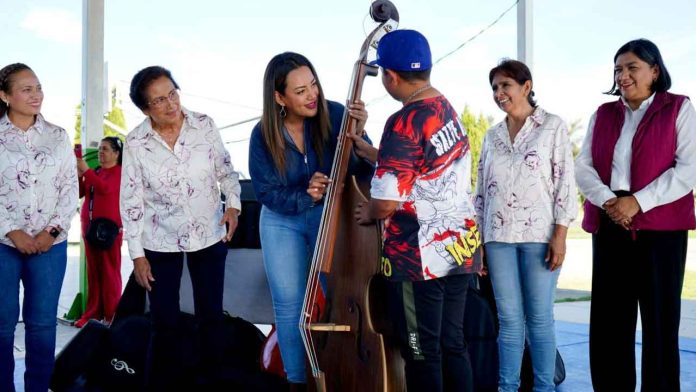 Zacapu, Michoacán, 26 de julio de 2025.-Encabezados por la presidenta municipal Moni Valdez, el equipo del DIF Municipal y el Programa de Atención a Menores y Adolescentes en Riesgo (PAMAR) realizaron la entrega de más de 30 instrumentos musicales a niñas y niños zacapenses, con lo que se da inicio a la conformación de la primera orquesta infantil del municipio.