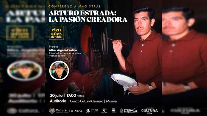 Morelia, Michoacán, 29 de julio de 2025.- Para conmemorar el centenario del natalicio de Arturo Estrada, figura clave del muralismo y referente del arte nacional, la Secretaría de Cultura de Michoacán (Secum) llevará a cabo una conferencia magistral en el Centro Cultural Clavijero, este miércoles 30 de julio a las 17:00 horas. El homenaje estará a cargo de la historiadora, escritora y crítica de arte Argelia Castillo, quien abordará la obra del maestro desde una perspectiva sensible y de análisis.