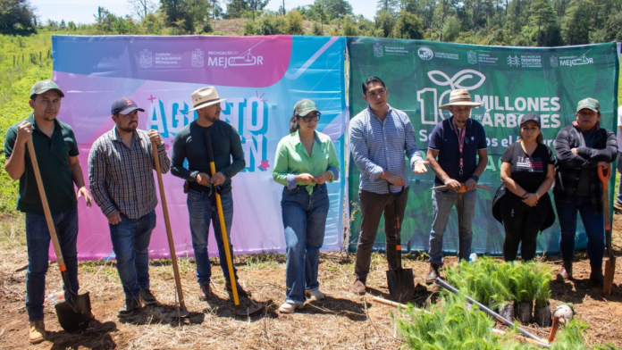 Ario, Michoacán, 2 de agosto de 2025.- Más de 50 mil pinos fueron plantados de forma simultánea en 16 municipios de Michoacán, como parte de la campaña “Sembremos el futuro”, que impulsa el gobernador Alfredo Ramírez Bedolla, con la meta de plantar más de 10 millones de árboles en todo el estado.
