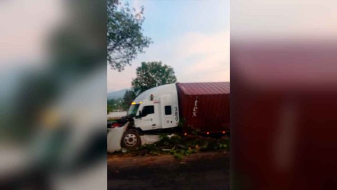Primeramente, en el kilómetro 18+300 del tramo Morelia – Tiripetío, en las inmediaciones de la comunidad de “El Reparo”, un tráiler de cabina blanca con número económico 380 y remolques de color guinda terminó siniestrado al salirse de la carpeta asfáltica, sin que se reportaran víctimas.