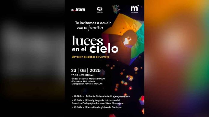 Morelia, Michoacán; 19 de agosto de 2025.- El Gobierno de Morelia que encabeza el presidente municipal, Alfonso Martínez Alcázar, por medio de su Secretaría de Cultura (SeCultura) invita al evento de elevación de globos de cantoya “Luces en el cielo”, el próximo sábado 23 de agosto, de 16:00 a 20:00 horas, en la Unidad Deportiva Morelos Indeco.