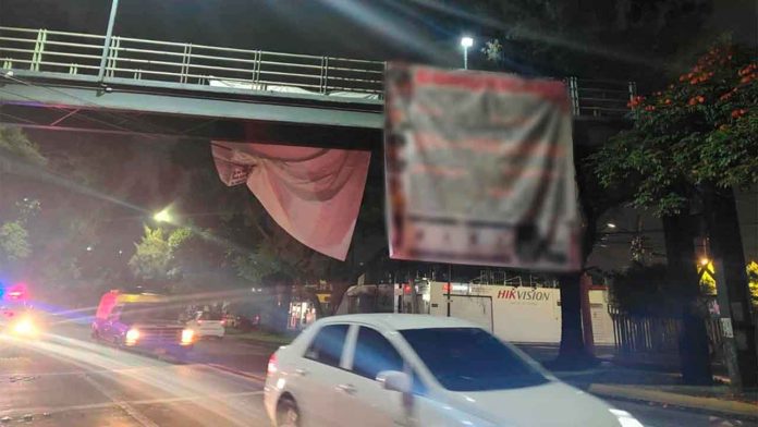 Morelia, Mich.- Lunes 25 de agosto de 2025.- De nueva cuenta sujetos desconocidos colocaron narcolonas en puentes peatonales ubicados en diferentes puntos de la capital michoacana. El texto impreso en dichos materiales no fue revelado por la Policía, pero se supo que son señalamientos contra mandos militares, funcionarios y células criminales que operan en Tierra Caliente.