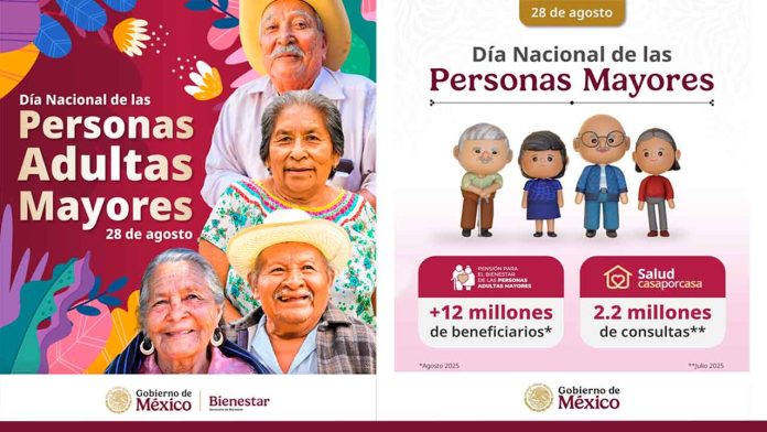 Ciudad de México, 28 de agosto de 2025.- En el marco de la conmemoración del Día del Adulto Mayor, la secretaria de Bienestar, Ariadna Montiel Reyes, señaló que los gobiernos de la Cuarta Transformación las personas adultas mayores son el centro de la política de Bienestar a través de las Pensiones para el Bienestar de las Personas Adultas Mayores y Mujeres Bienestar, las cuales reconocen su aportación en el cuidado de su familia, al desarrollo y crecimiento del país.