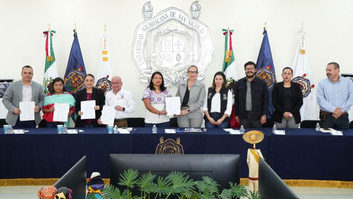 Morelia, Michoacán.- La Universidad Michoacana de San Nicolás de Hidalgo (UMSNH) recibió a representantes de comunidades de pueblos originarios con quienes se acordó hacer equipo el torno al rescate del Lago de Pátzcuaro, lo anterior, en el marco de la firma del Acuerdo de Pátzcuaro “Construyendo un diálogo con dignidad”, signando por la rectora Yarabí Ávila González, así como por integrantes del Gobierno del Estado, del Congreso Local, de diversos ayuntamientos y de comunidades originarias.