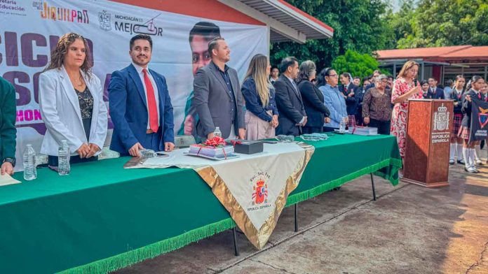 Jiquilpan, Michoacán, 1 de septiembre de 2025.- El Presidente Municipal, Lic. Gerardo Olloqui Estrada, asistió esta mañana al acto de inicio del ciclo escolar 2025-2026, donde participaron escuelas de distintas instituciones y niveles educativos.