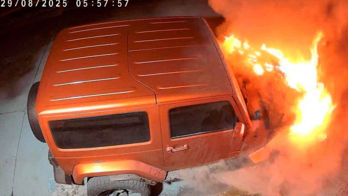 Al sitio arribó Ricardo “N”, quien manipuló un bote con cartón y lo colocó en la parte trasera del vehículo, al que posteriormente prendió fuego, provocando un incendio que ocasionó daños valuados en 197 mil pesos.