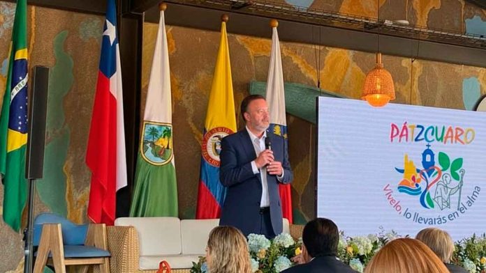 Rionegro, Colombia, 5 de septiembre de 2025.- El presidente municipal de Pátzcuaro, Julio Arreola, llevó hasta Rionegro, Colombia, el proyecto Marca Ciudad Pátzcuaro: Vívelo, lo llevarás en el alma, durante su participación en el Encuentro de Marcas Territoriales, un foro internacional que reunió a representantes de Brasil, Ecuador, Chile, México y reconocidas marcas colombianas.