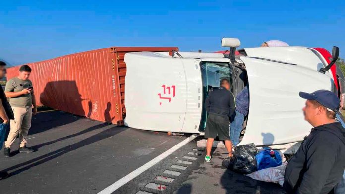 En el sitio se presentaron patrulleros de la Guardia Nacional (GN), quienes se encargaron de abanderar el incidente y realizaron el peritaje correspondiente, además pidieron el apoyo de una grúa para retirar el pesado tractocamión y despejar la vialidad.