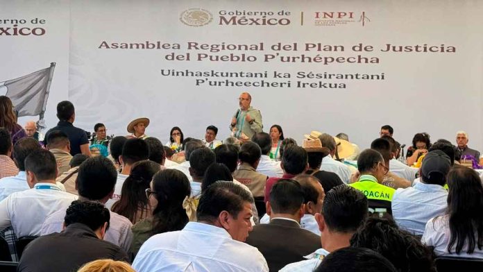 Ziracuaretiro, Michoacán.- En seguimiento al compromiso con las comunidades indígenas, la Secretaría de Gobierno celebró la Cuarta Asamblea Regional del Plan de Justicia del Pueblo P’urhépecha en la comunidad indígena de San Ángel Zurumucapio.