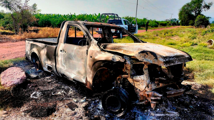 Fue esta tarde cuando los patrulleros acudieron a un camino de terracería que comunica a la localidad de Chandio, debido a que fue localizada una camioneta tipo pickup con impactos de bala y totalmente quemada, que se presume fue el saldo de un enfrentamiento entre células delictivas antagónicas.