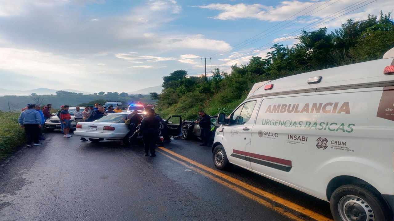 Chichota, Mich.- 17 de septiembre de 2025.- Un fuerte choque de frente entre un taxi y un vehículo particular dejó como saldo a los dos conductores lesionados, así como cuantiosos daños materiales.
