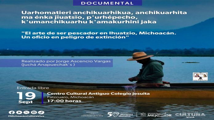Pátzcuaro, Michoacán, 18 de septiembre de 2025.- El Centro Cultural Antiguo Colegio Jesuita presentará este viernes 19 de septiembre, a las 17:00 horas, el documental “El arte de ser pescador en Ihuatzio, Michoacán. Un oficio en peligro de extinción”, realizado por Jorge Ascencio Vargas. La proyección será con entrada libre, abierta a todo público.