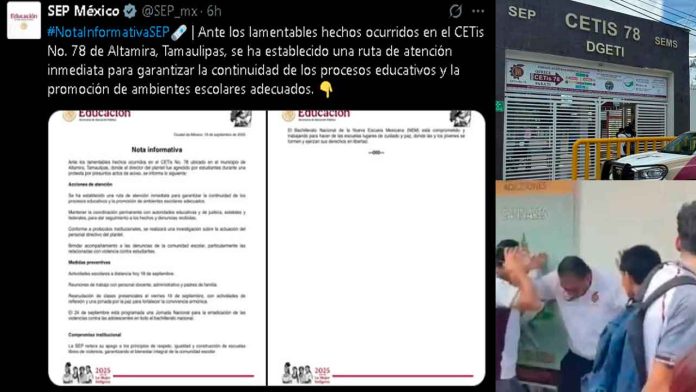 Altamira, Tamaulipas. — La Secretaría de Educación Pública (SEP) informó que ya se implementó una ruta de atención inmediata tras los hechos violentos registrados en el CETis No. 78 de Altamira, donde estudiantes agredieron al director del plantel durante una protesta por presunto acoso sexual.