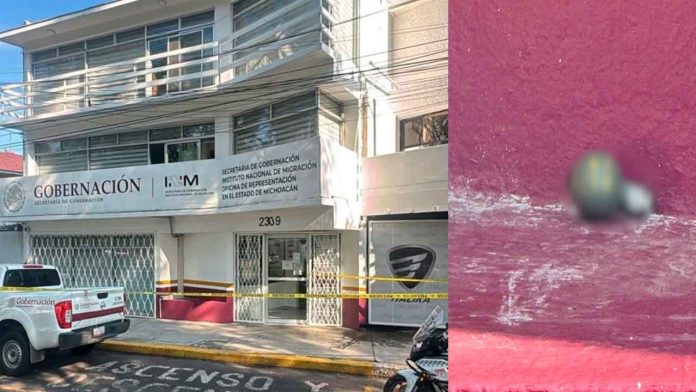 Morelia, Michoacán.— La mañana de este lunes se reportó que un sujeto desconocido lanzó una granada a la entrada de las instalaciones del Instituto Nacional de Migración (INM), ubicadas sobre la avenida Camelinas, en la capital michoacana.