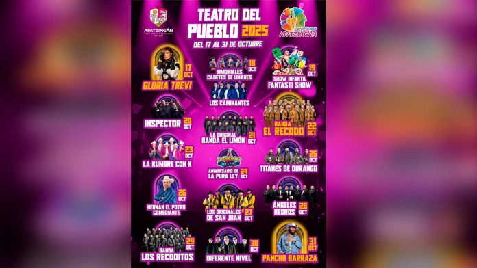 El programa contempla 15 presentaciones musicales, entre ellas la de Gloria Trevi el 17 de octubre, La Original Banda el Limón el 21 de octubre, Los Originales de San Juan y Pancho Barraza el 31, además de eventos deportivos como el homenaje al futbolista michoacano Emilio Mora, con la participación de Elías Hernández.
