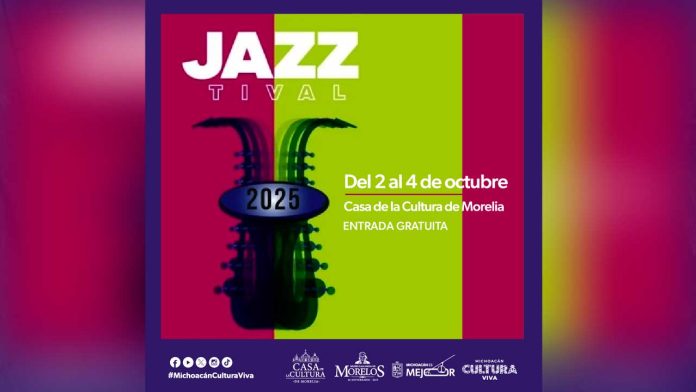 Morelia, Michoacán, 26 de septiembre de 2025.- La Secretaría de Cultura de Michoacán (Secum) y el saxofonista Juan Alzate anunciaron la edición 23 del Jazztival, que se realizará del 2 al 4 de octubre en la Casa de la Cultura de Morelia. Habrá conciertos, clases magistrales, proyecciones, jam sessions y el Concurso Nacional de Ensambles Estudiantiles de Jazz.