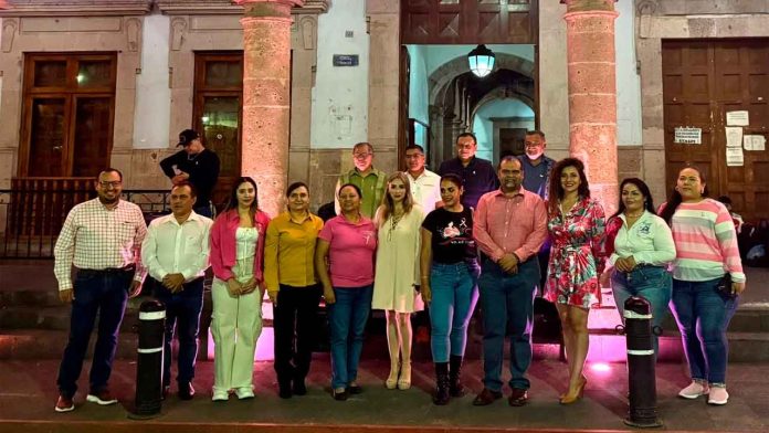 Puruándiro, Mich. 02 de octubre del 2025. A fin de mostrar la empatía y sensibilidad que caracterizan al gobierno del presidente Víctor Vázquez, esta noche el centro histórico del municipio de Puruándiro se iluminó de color rosa, como una muestra de solidaridad a las personas que atraviesan por el proceso de sanación de cáncer y ayudar a generar conciencia en la prevención del mismo.