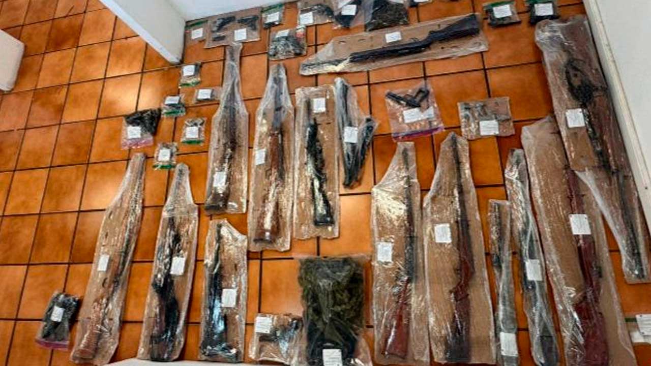Uruapan, Michoacán, 3 de octubre del 2025.- En seguimiento al refuerzo operativo que se realiza en esta demarcación, los agentes de las secretarías de Seguridad Pública (SSP) y de la Defensa Nacional (Defensa), en apoyo a la Fiscalía General del Estado (FGE), efectuaron diversas acciones operativas que dieron como resultado la detención de seis personas, y el aseguramiento de 19 armas de fuego, fuertes cantidades de drogas y equipo táctico.