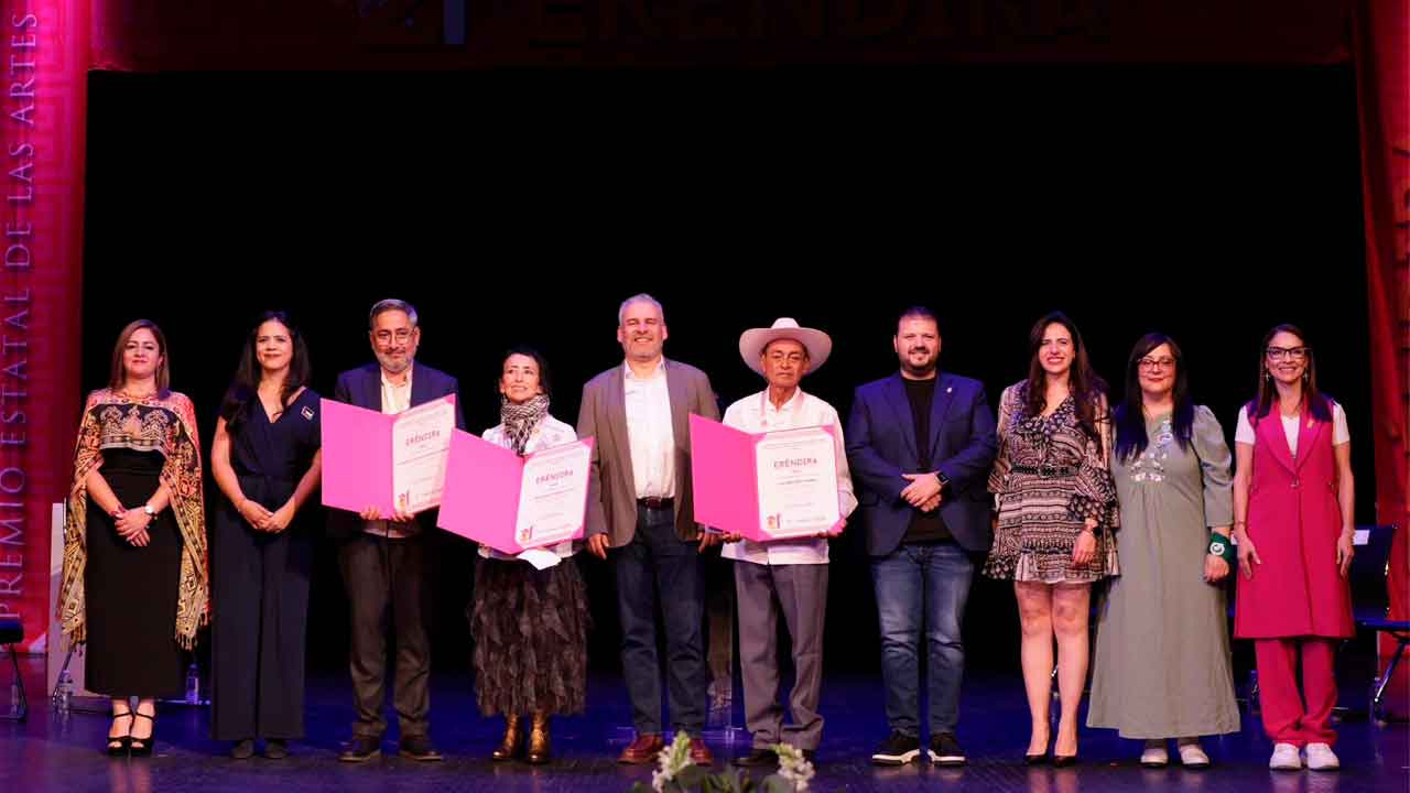 “Hoy el símbolo de Eréndira cobra vida entre nosotros y se encarna en estos tres grandes artistas cuyas obras son un legado que trasciende fronteras y engrandece lo mejor de nuestro Michoacán. Su arte es un tesoro invaluable, un acto de resistencia creativa que protege y expresa las raíces culturales y la identidad de nuestro pueblo”, expresó.