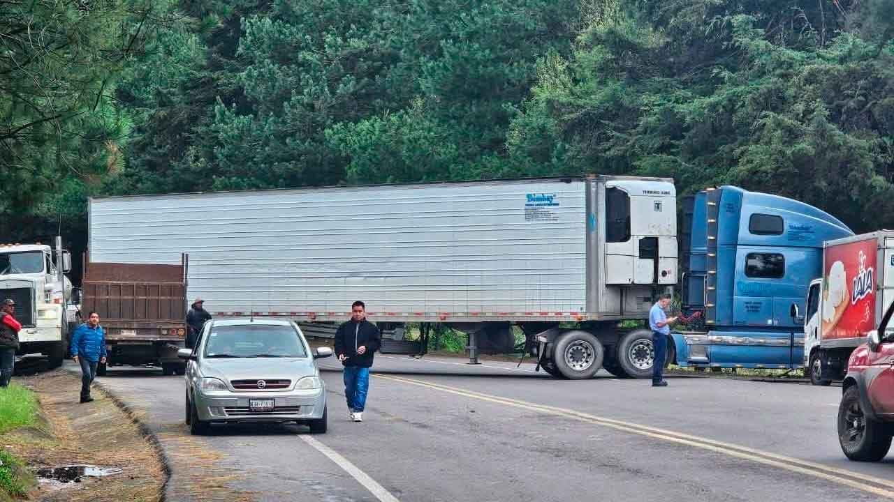 Uruapan, Mich.- 9 de octubre de 2025.- Habitantes de la comunidad de San Lorenzo mantienen bloqueada la carretera Uruapan-Los Reyes desde la noche del miércoles, en protesta por la detención de su Jefe de Tenencia, quien fue asegurado por autoridades mientras portaba un arma de fuego.