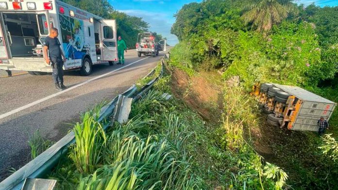 De acuerdo con los reportes, el incidente se registró en el kilómetro 298, lo que provocó la movilización de las unidades de emergencia y las autoridades locales. El personal de AMBUMED acudió al sitio y localizó al conductor, identificado como Aníbal, de 24 años de edad, quien se encontraba fuera del vehículo, un camión Kenworth blanco con placas 82-AF-9X.