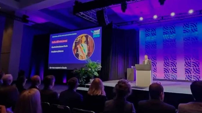 La Water Environment Federation (WEF) galardona a la Presidenta Claudia Sheinbaum con el Premio Public Officials Award, siendo la primera Jefa de Estado en recibir un reconocimiento de este tipo, por su liderazgo e impulso en proyectos hídricos, con los que busca garantizar un acceso universal al agua.