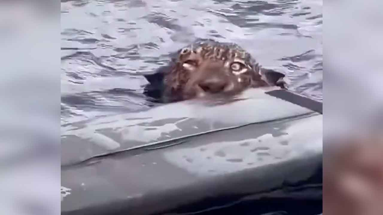 Un jaguar macho, gravemente herido por disparos de arma de fuego, fue rescatado por efectivos de la Policía Militar de Brasil en las aguas del Río Negro. El felino se encontraba débil y desangrado después de ocho horas a la deriva, aferrado a un flotador improvisado en la embarcación de los rescatistas.