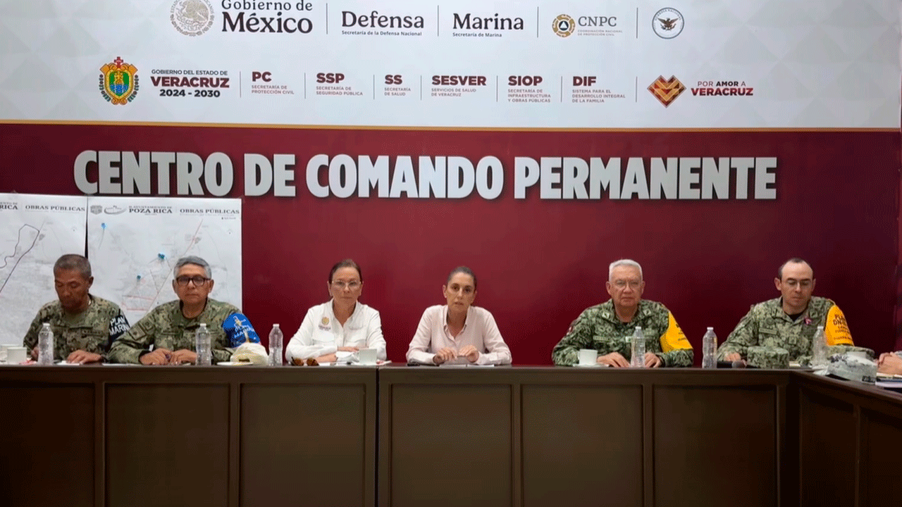 Veracruz, México – La presidenta Claudia Sheinbaum supervisa los trabajos de emergencia tras las intensas lluvias que afectaron a comunidades de Veracruz y Puebla, desde el Centro de Comando Permanente.