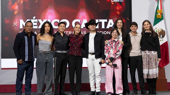 “Entonces, el objetivo principal de ‘México Canta’ y por eso se llama “México Canta por la paz y contra las adicciones”, es promover letras distintas a partir de la nueva música mexicana. Y por eso, queremos que ellas y ellos vayan no solamente a grandes conciertos, sino a escuelas, a centros donde estén jóvenes, en donde hablen de sus propias experiencias y compartan una visión distinta a partir de la música, que es un lenguaje maravilloso en el que los jóvenes se encuentran”, destacó en la conferencia “Las Mañaneras del Pueblo”.
