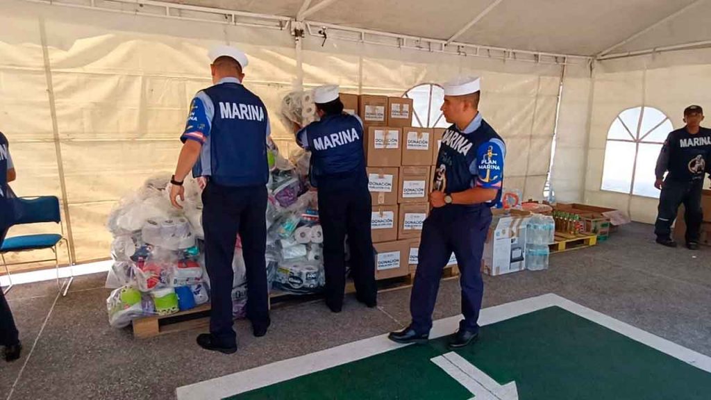 El Capitán de Fragata José Manuel Navarrete Pimentel explicó que se están recolectando principalmente alimentos no perecederos, agua y artículos de higiene personal para los damnificados.