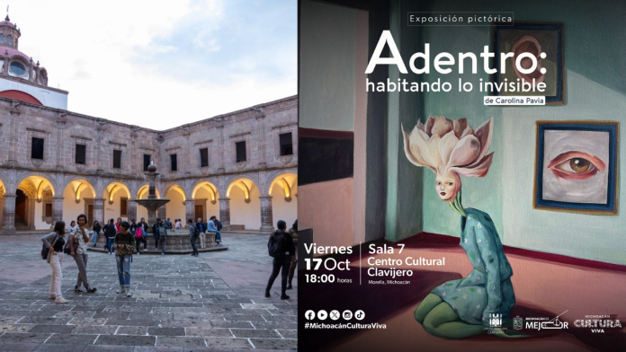 La Secretaria de Cultura de Michoacán presenta la exposición “Adentro: habitando lo invisible” de la artista Carolina Pavia, la inauguración se realizara el dia 17 de octubre a las 18:00 horas en la sala 7 del Centro Cultural Clavijero.