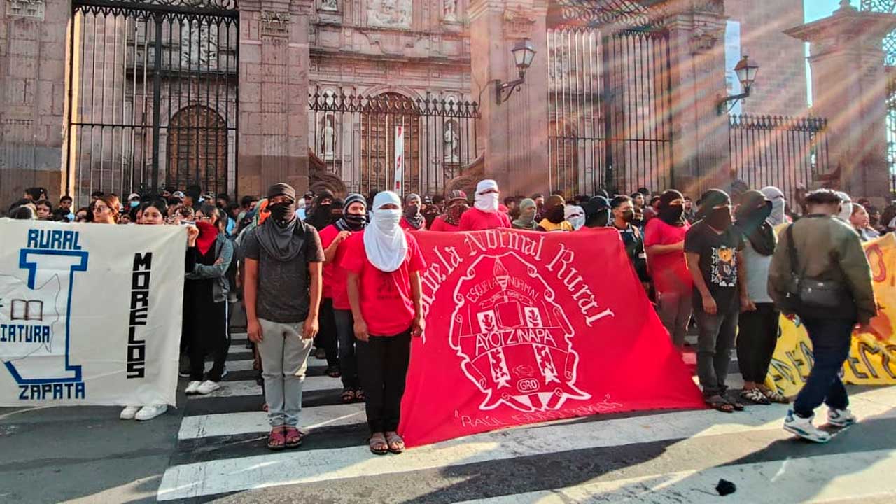 Normalistas que se manifiestan en el primer cuarto de la ciudad, deslindó de los actos violentos ocurridos, atribuyéndole a personas ajenas a su movimiento; afirmó que su protesta es pacífica y busca alzar la voz para exigir derechos.