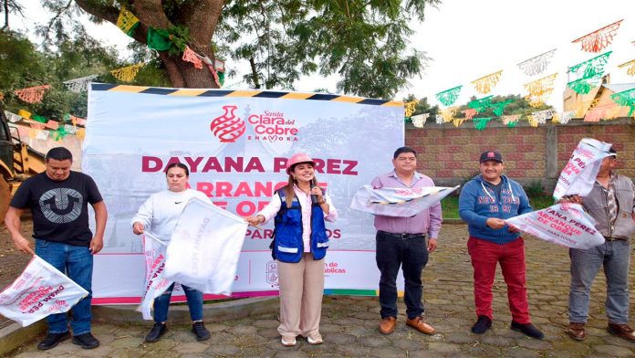 Salvador Escalante, Michoacán.– La presidenta municipal Dayana Pérez Mendoza encabezó el arranque de los trabajos de adoquinado en la calle que colinda con la iglesia de la comunidad de Santa Ana, una acción que forma parte del compromiso del Ayuntamiento por mejorar la infraestructura y los espacios públicos del municipio.