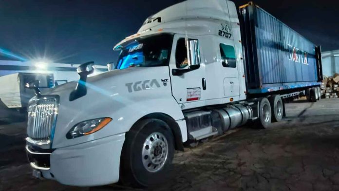 Uruapan, Mich.- 17 de octubre de 2025.- Un tráiler robado con violencia en el puerto de Lázaro Cárdenas fue asegurado en la Central de Abastos ubicada en la colonia Quirindavara, al oriente de la ciudad de Uruapan.