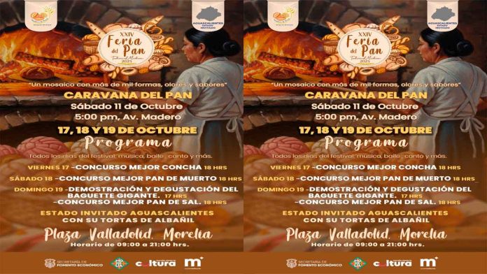 Este fin de semana, la tradicional Feria del Pan llegará a la Plaza Valladolid de Morelia, ofreciendo a locales y visitantes una experiencia llena de sabor, tradición y talento artesanal. El evento se llevará a cabo del 17 al 19 de octubre, con actividades diarias desde las 9:00 de la mañana hasta las 9:00 de la noche.