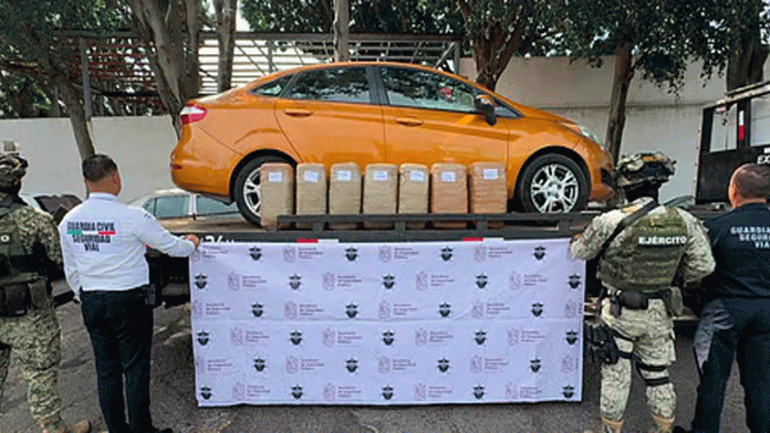 En una acción conjunta dentro del operativo Blindaje Morelia, personal de Seguridad Pública y la Secretaría de la Defensa Nacional (Sedena) lograron asegurar más de 57 kilogramos de marihuana que fueron encontrados dentro de un vehículo que transitaba por la carretera Morelia-Pátzcuaro, cerca de Santiago Undameo.