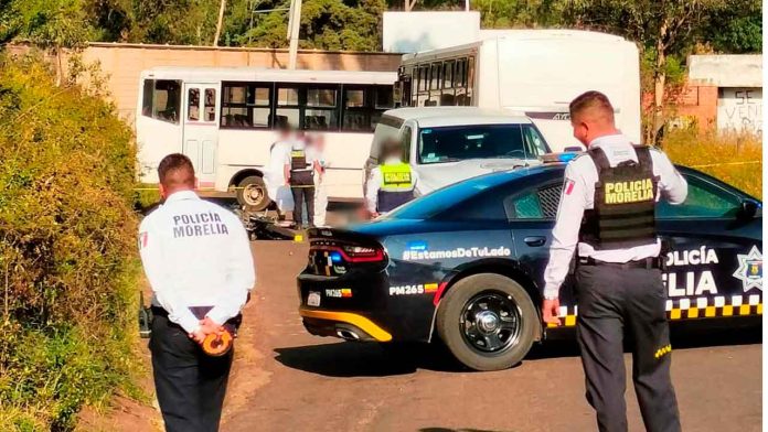 Morelia, Mich.- Lunes 20 de octubre de 2025.- Un joven motociclista perdió la vida tras ser impactado por un espejo retrovisor lateral de una camioneta y proyectado contra con camión de pasajeros, el cual lo atropelló. La tragedia ocurrió sobre la carretera Jesús del Monte-San José de las Torres, en la zona sur de Morelia, informaron autoridades policiales.