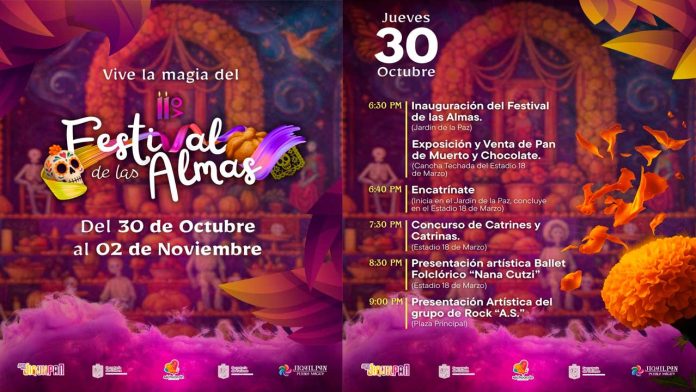 Jiquilpan, Michoacán, octubre de 2025. – El H. Ayuntamiento de Jiquilpan invita a la población y visitantes a disfrutar del 11° Festival de las Almas, una celebración que rinde homenaje a la vida, la muerte y las raíces culturales que dan identidad a este Pueblo Mágico.