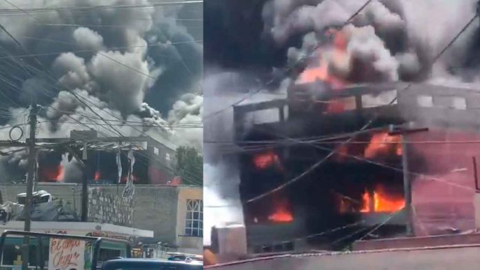 🔥Fuerte incendio en Ecatepec: una fábrica de colchones fue consumida por las llamas, lo que provocó la suspensión del servicio del Mexicable 🚒⚠️