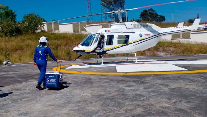 La tripulación aeromédica realizó el abordaje del órgano y del personal médico en el helipuerto del Hospital de Alta Especialidad del Instituto de Seguridad y Servicios Sociales de los Trabajadores del Estado (ISSSTE) para ser llevado hacia el Centro Médico Dalinde.