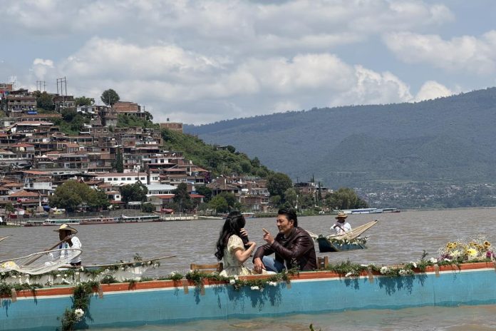 En medio del lago de Pátzcuaro y de fondo la isla de Janitzio, los protagonistas tendrán un hermoso final