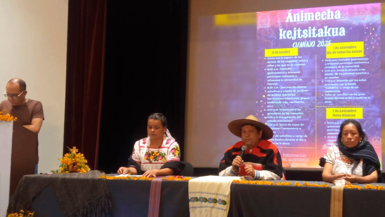 Morelia, Michoacán, 27 de octubre de 2025.- La comunidad de Cuanajo anunció su programa de actividades para la Noche de Muertos del 31 de octubre al 2 de noviembre, las cuales incluyen la tradicional espera de las almas de los “angelitos”, un amplio corredor gastronómico y artesanal, y la destacada inauguración de su caballo monumental en la plaza principal, informó la Secretaría de Turismo de Michoacán (Sectur), a cargo de Roberto Monroy García.