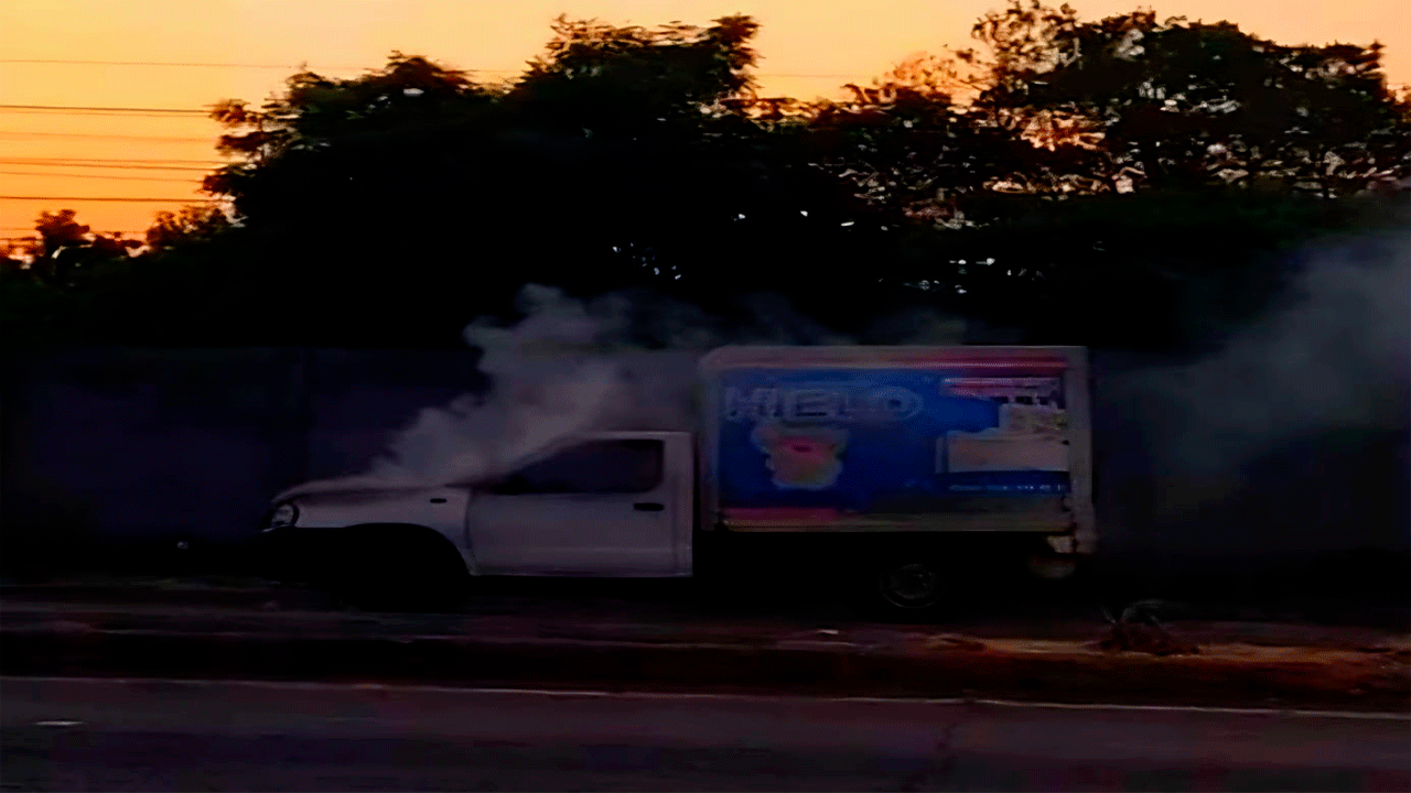 Múgica, Mich.- 29 de octubre de 2025.- La pronta reacción de automovilistas evitó que un conato de incendio en una camioneta de reparto se convirtiera en una tragedia, en la colonia El Carriel en Nueva Italia, perteneciente al municipio de Múgica.