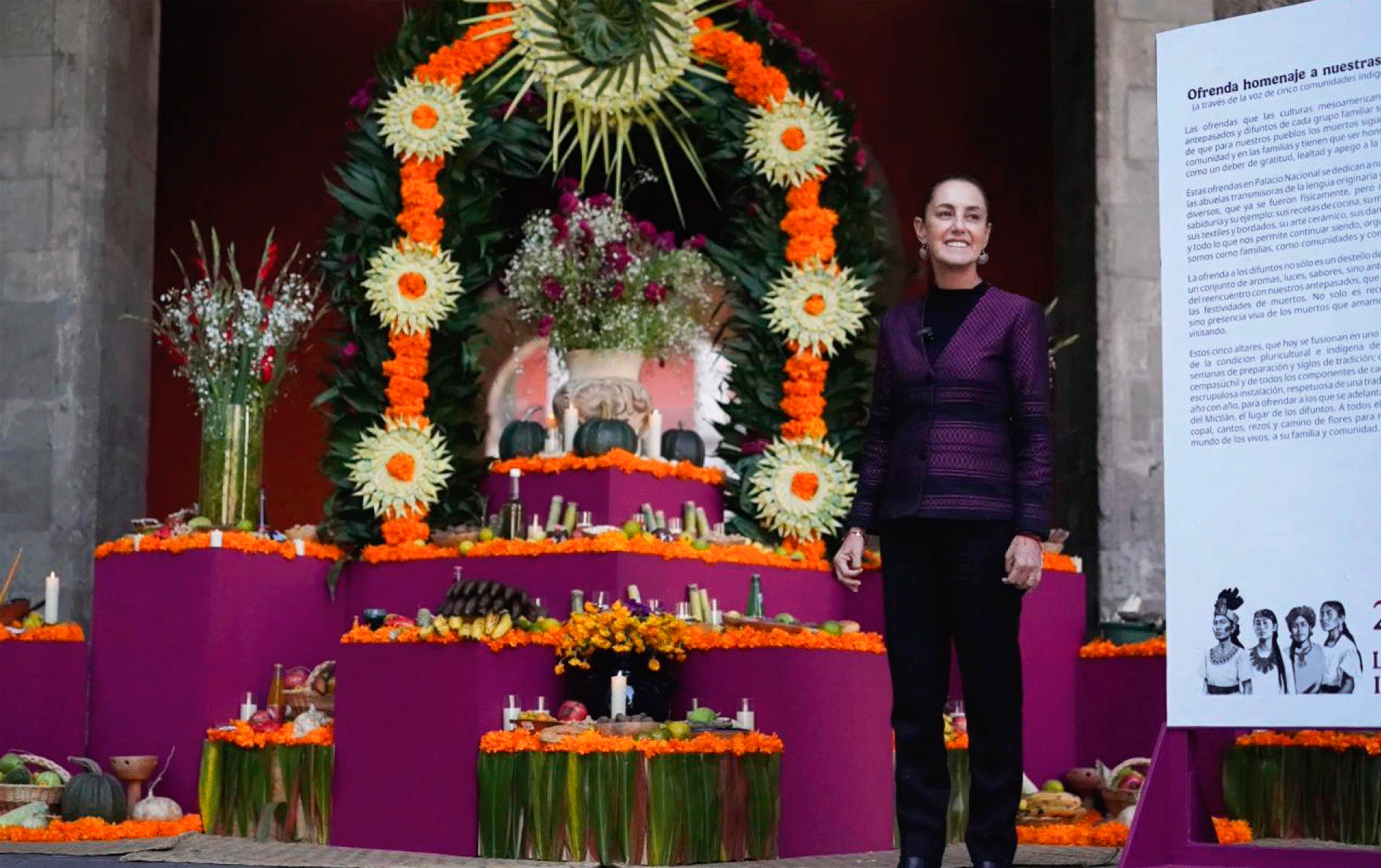 En un ambiente lleno de flores de cempasúchil, veladoras, copal y elementos representativos de las comunidades originarias, Sheinbaum destacó que la ofrenda es un símbolo de memoria, gratitud y reconocimiento hacia las ancestras que “sembraron vida en su paso por la tierra”.